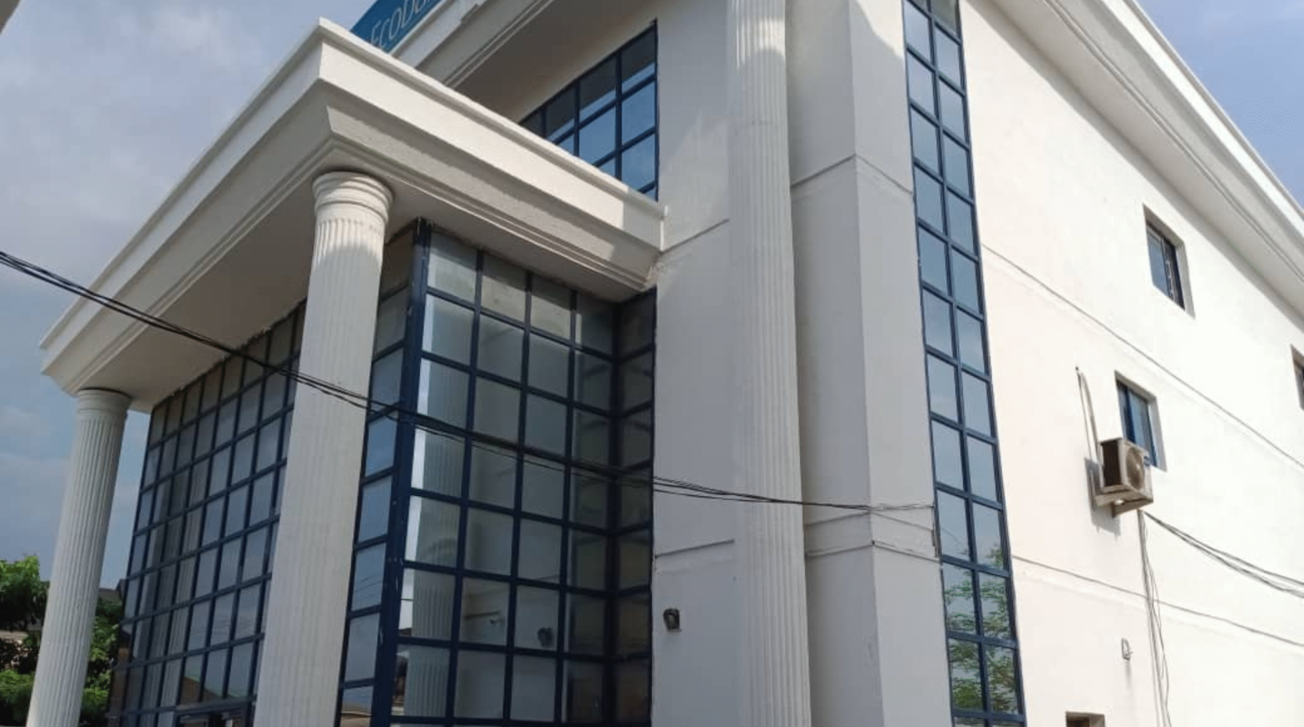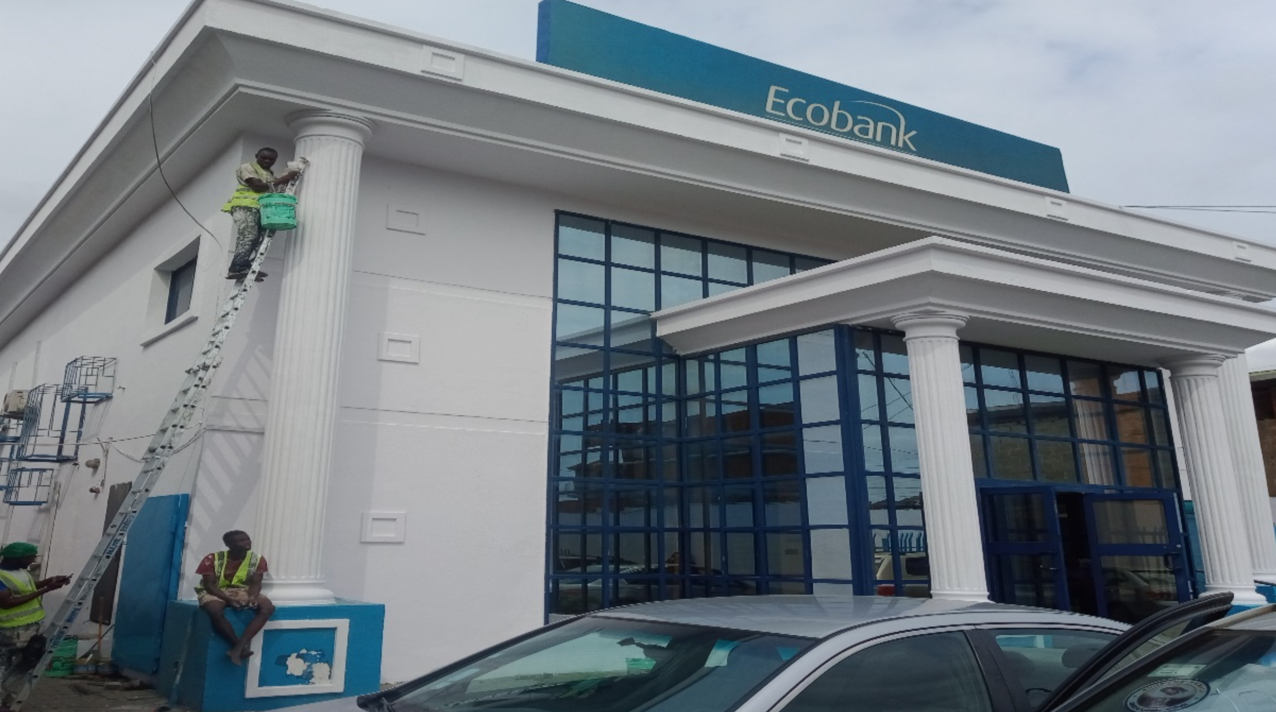 Renovation of Ecobank Isaac John Branch in Ikeja, Lagos, involving internal and external painting, ceiling works, roof felting for drainage, and more upgrades